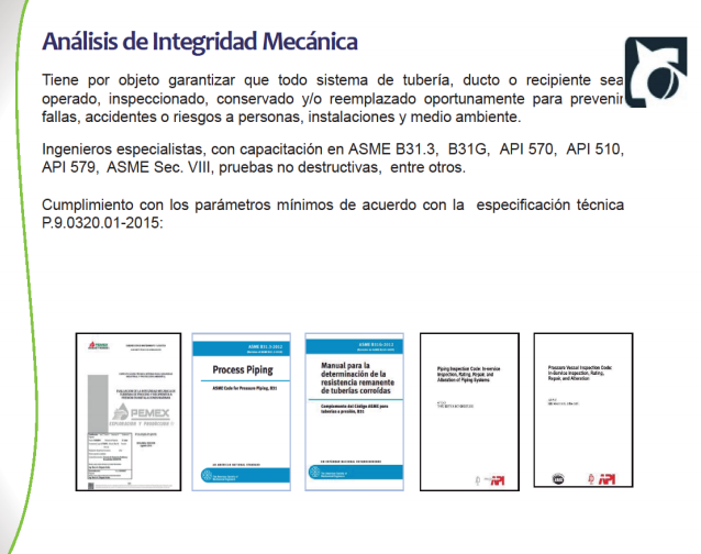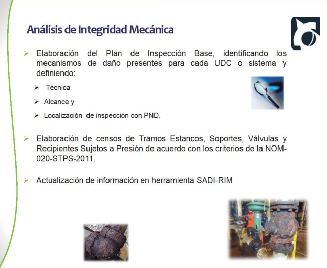 Tiene por objeto garantizar que todo sistema de tubería, ducto o recipiente se operado, inspeccionado,conservado y/o reemplazado oportunamente para prevenir fallas, accidentes o riesgos a personas, instalaciones y medio ambiente.